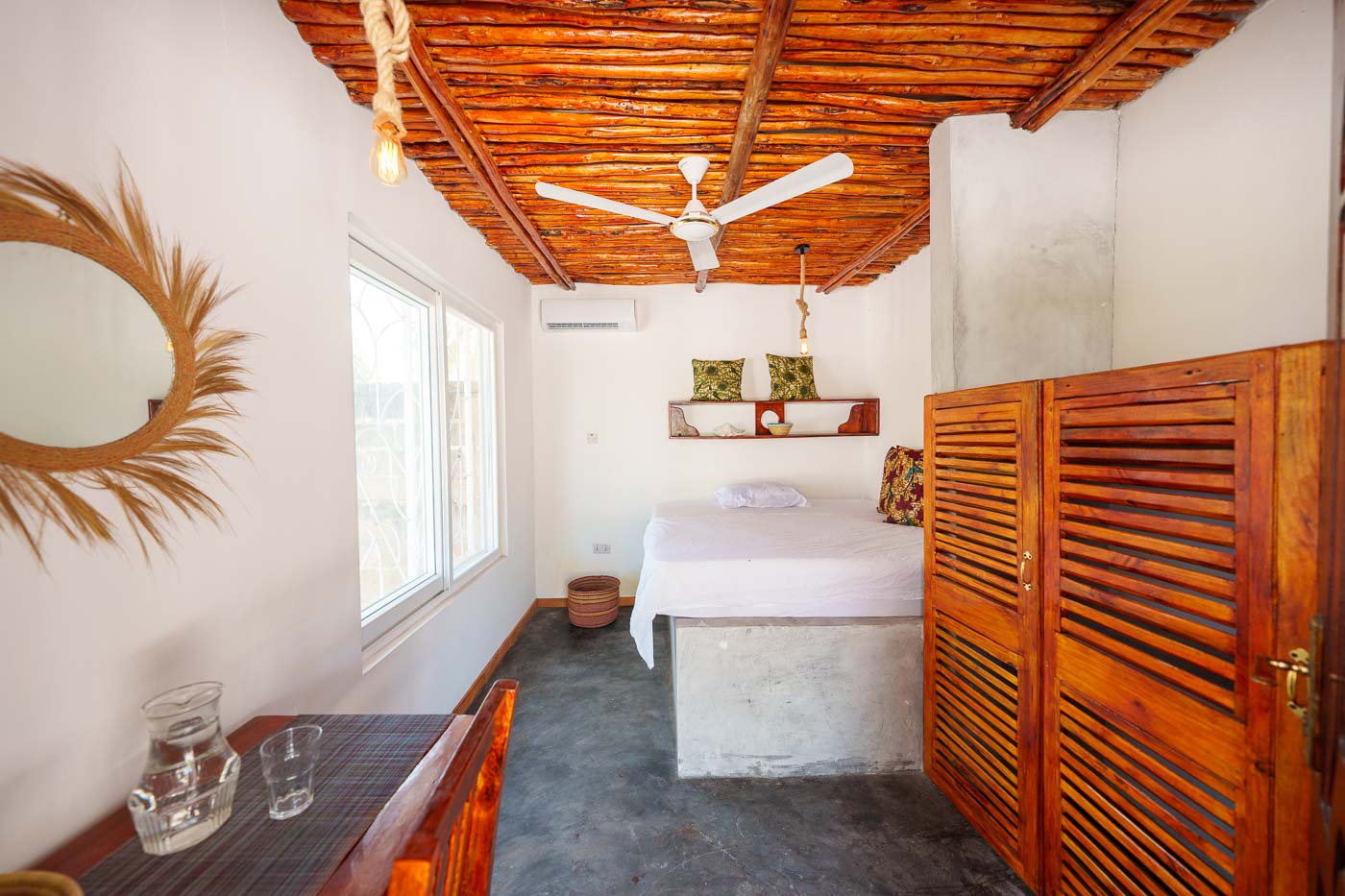 Auch kleinere Zimmer für zwei Personen sind verfügbar. Für Langzeitaufenthalte kannst Du ein eigenes Haus mit Küche und Badezimmer wochen- oder monatsweise mieten.