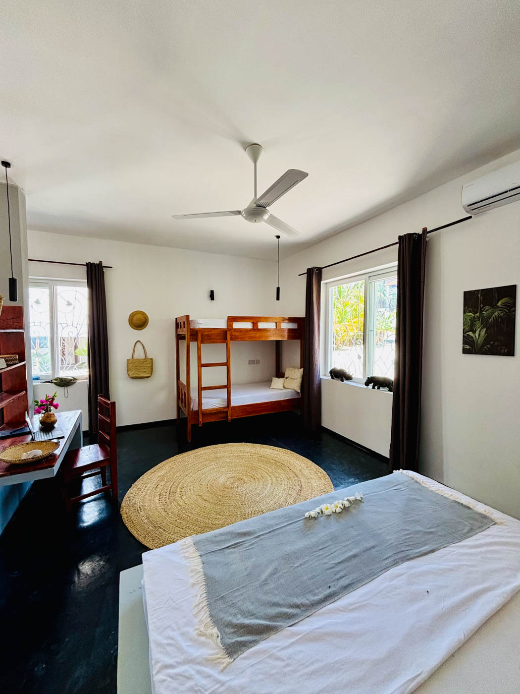 Wir gehören zu den wenigen Anbietern mit einer neuen Solaranlage, die uns unabhängig von Stromausfällen macht. WLAN, 24-Stunden-Security, ein großzügiger Ess- und Arbeitsbereich sowie eine überdachte Dachterrasse mit Ozeanblick sind ebenfalls inklusive. Unter unseren Palmen findest Du Hängematten für Dich und Deine Freunde.